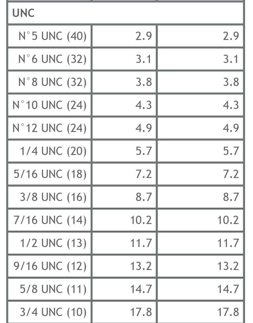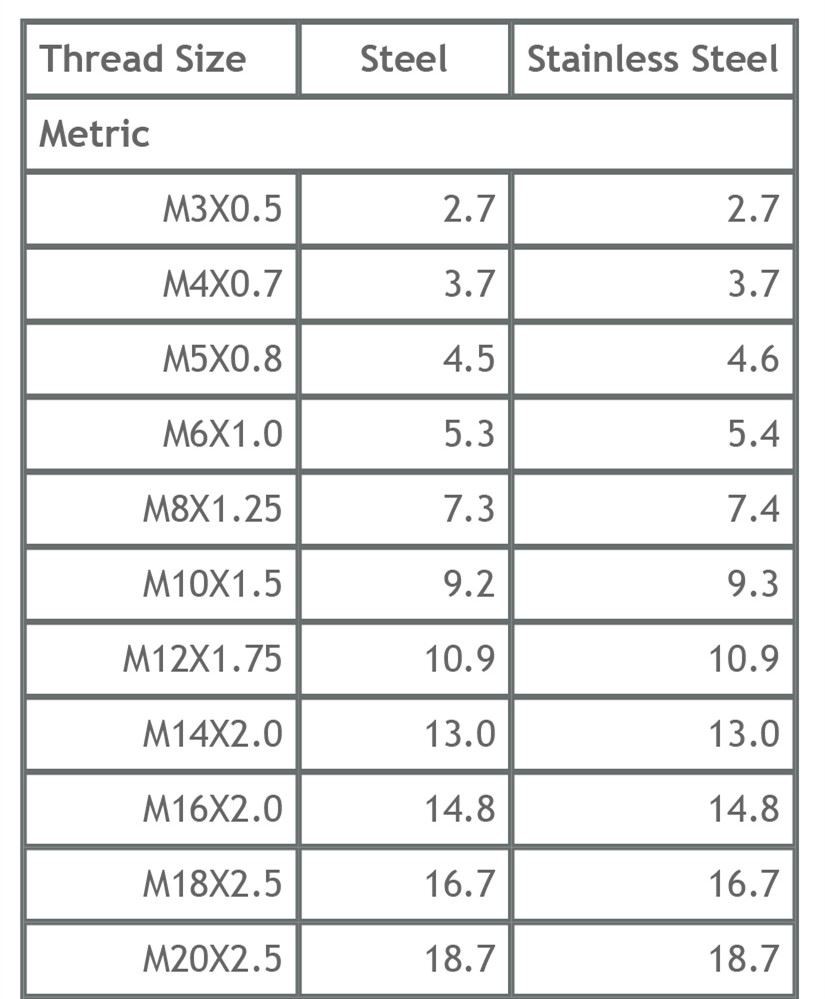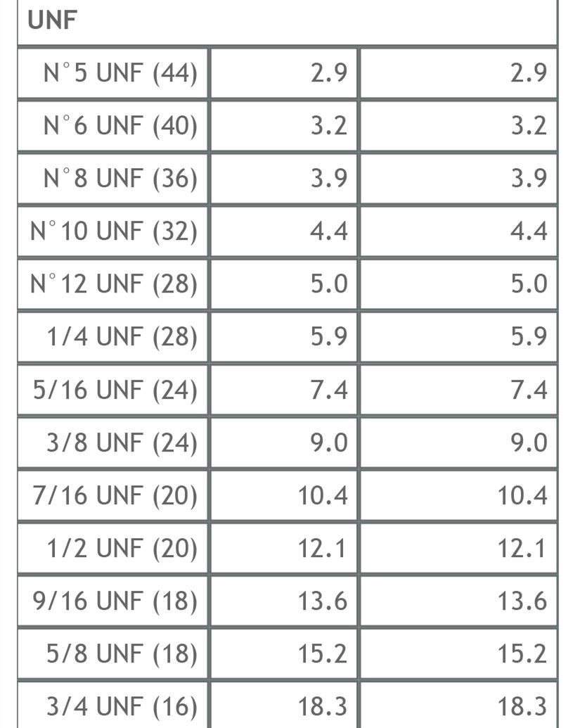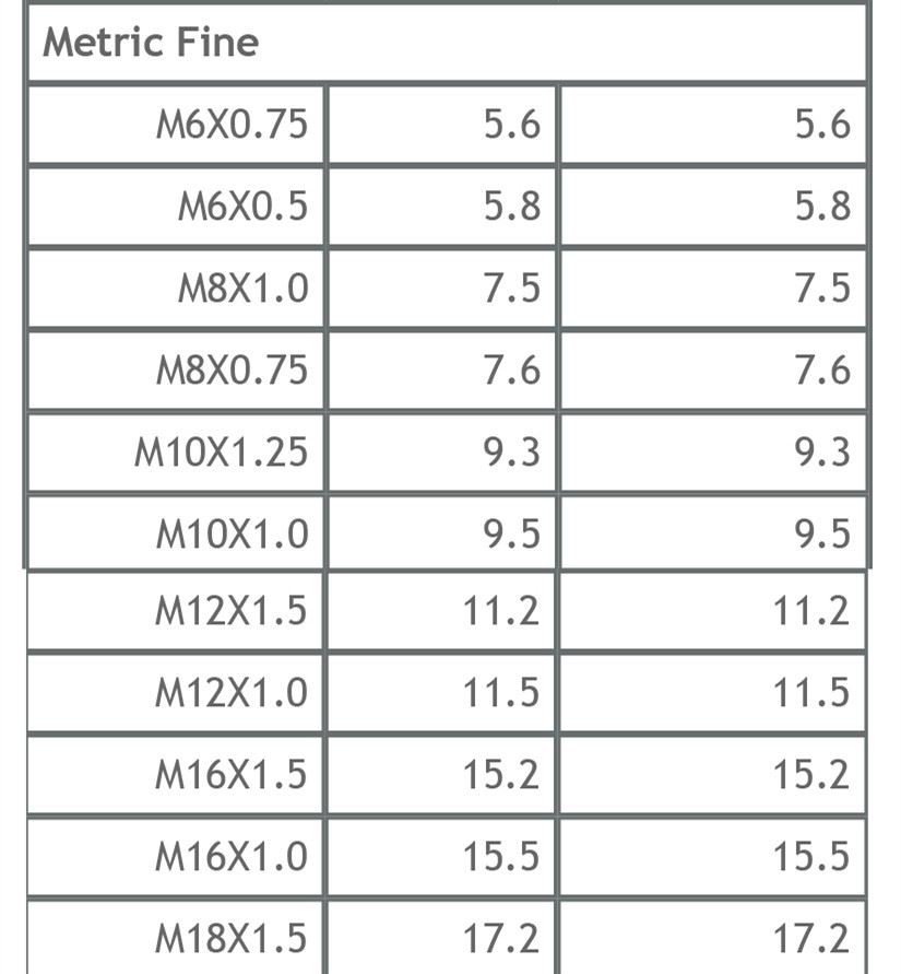 METRIC | METRIC-FINE | BSP | UNC | UNF | NPT | |